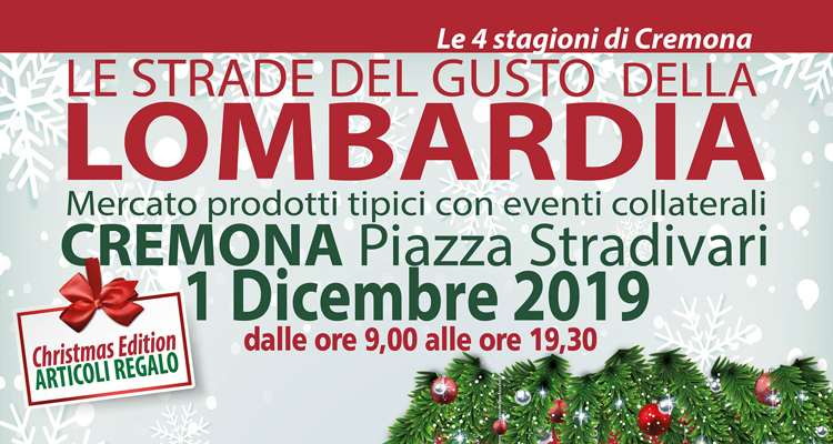 MERCATINO LE STRADE DEL GUSTO DELLA LOMBARDIA edizione CHRISTMAS EDITION, manifestazione inserita nel calendario degli eventi dedicati al Natale della città di Cremona che si svolgerà il 1 dicembre nella centralissima Piazza Stradivari.