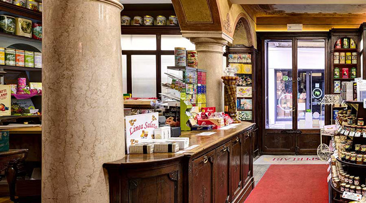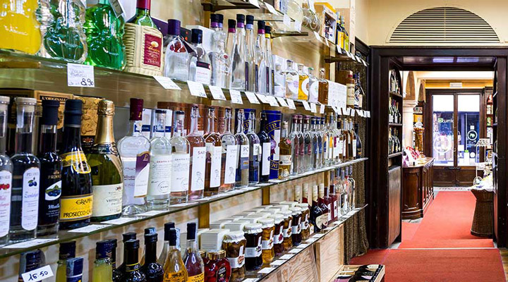 Il Negozio Sperlari, è anche un punto di riferimento per gli appassionati di vini e liquori, grazie alla sua enoteca ricca di liquori e distillati provenienti da tutto il mondo e di un’accurata selezione di vini italiani.